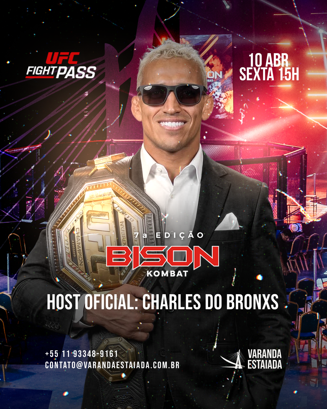 No dia 10 de abril, o Varanda Estaiada, um dos espaços mais renomados e disputados da capital paulista, será sede da 7ª edição do Bison Kombat, consolidando-se como um dos principais palcos para grandes eventos esportivos e de entretenimento da cidade. Com abertura dos portões às 15h e início das lutas às 17h, o evento promete uma experiência completa ao público, unindo esporte de alto nível, estrutura premium e transmissão global ao vivo pelo UFC Fight Pass, reforçando o alcance internacional do dia.
